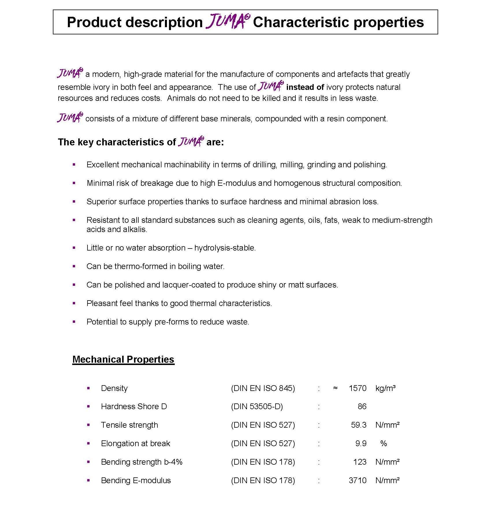 Juma ®  is a high-quality, modern processing material for the production of components and art objects. Juma ® consists of a mixture of various mineral base materials, embedded in a resin component.Â