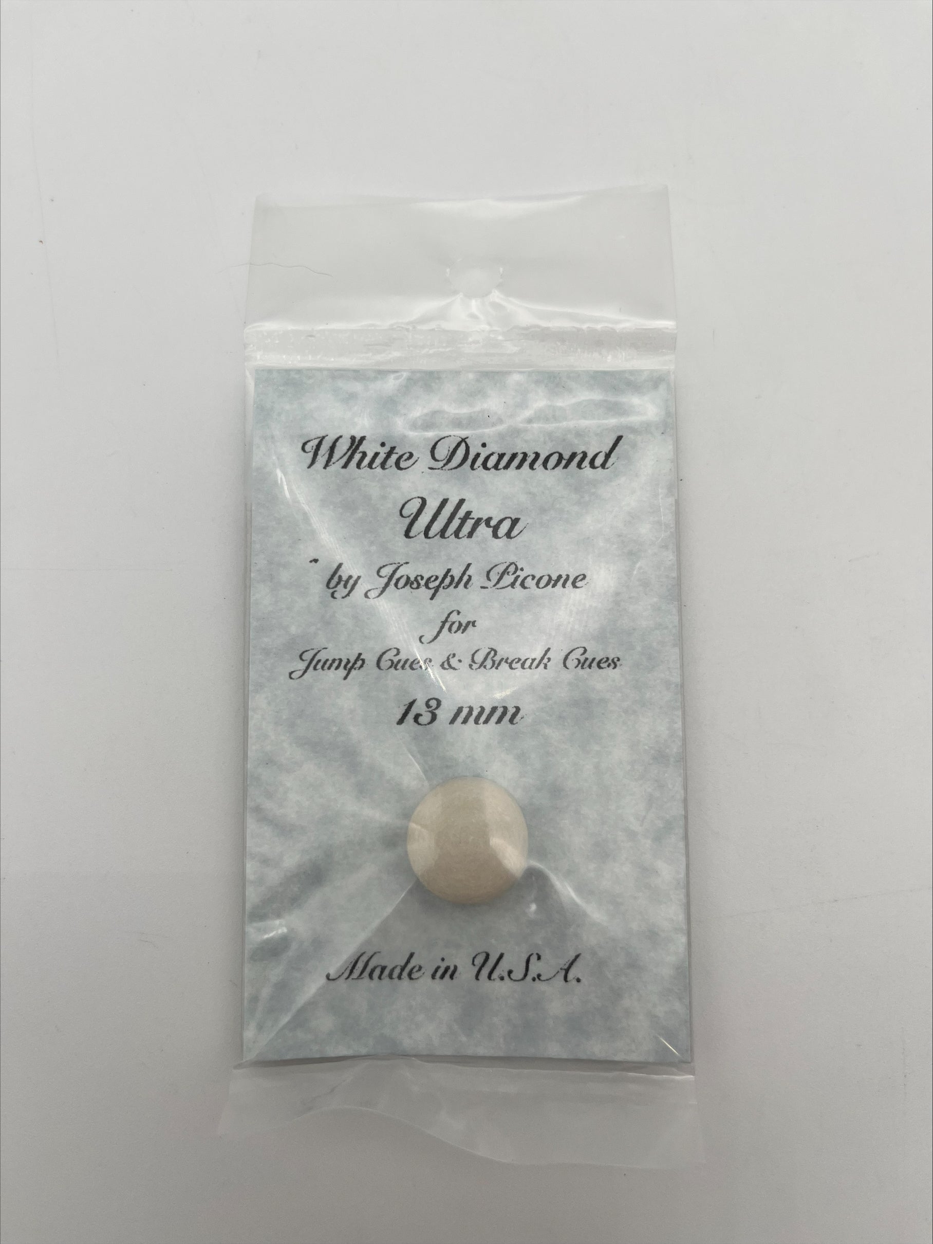 With Picone White Diamond Cue Tips, you can break and jump with confidence knowing that the tip won't pop off or produce a glass-breaking sound. It's much easier to install these tips with Super-Gels or epoxies and they're less prone to popping off.