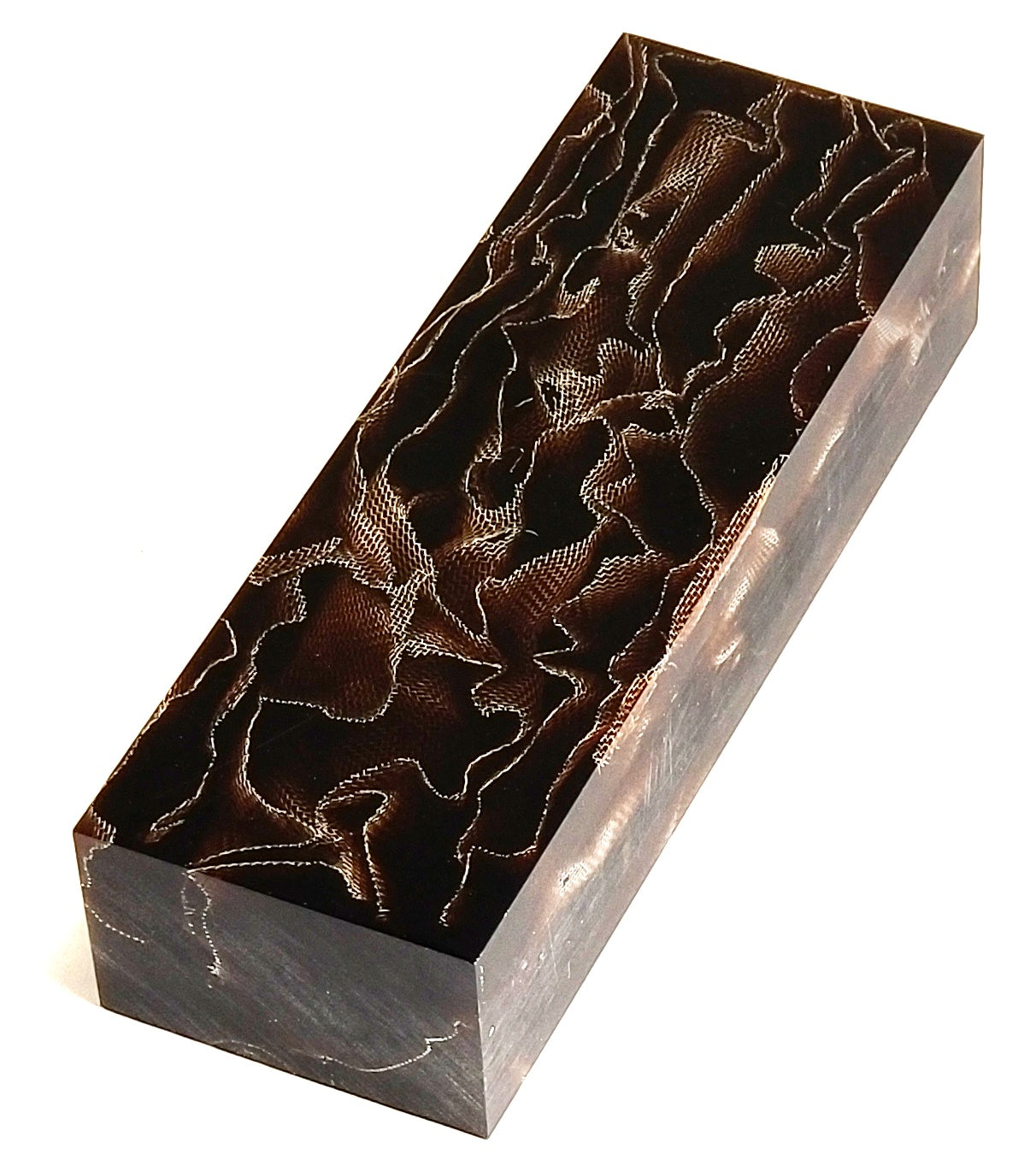 Beautiful 3D effect composites This is what happens when composites turn into art. Raffir Composites are materials made of natural fibers or metals and polymer resins. We chose plant fibers for their light color, patterns, and textures. The metals are brass, bronze, and aluminum, with their machinability and corrosion resistance. Finally, the polymer resins bind the materials together, giving contrast and 3D depth. The result is a deep semi-translucent high-contrast material for fine handles, jewelry, etc. Some of the composites are food approved and, therefore, suitable for kitchen tools.