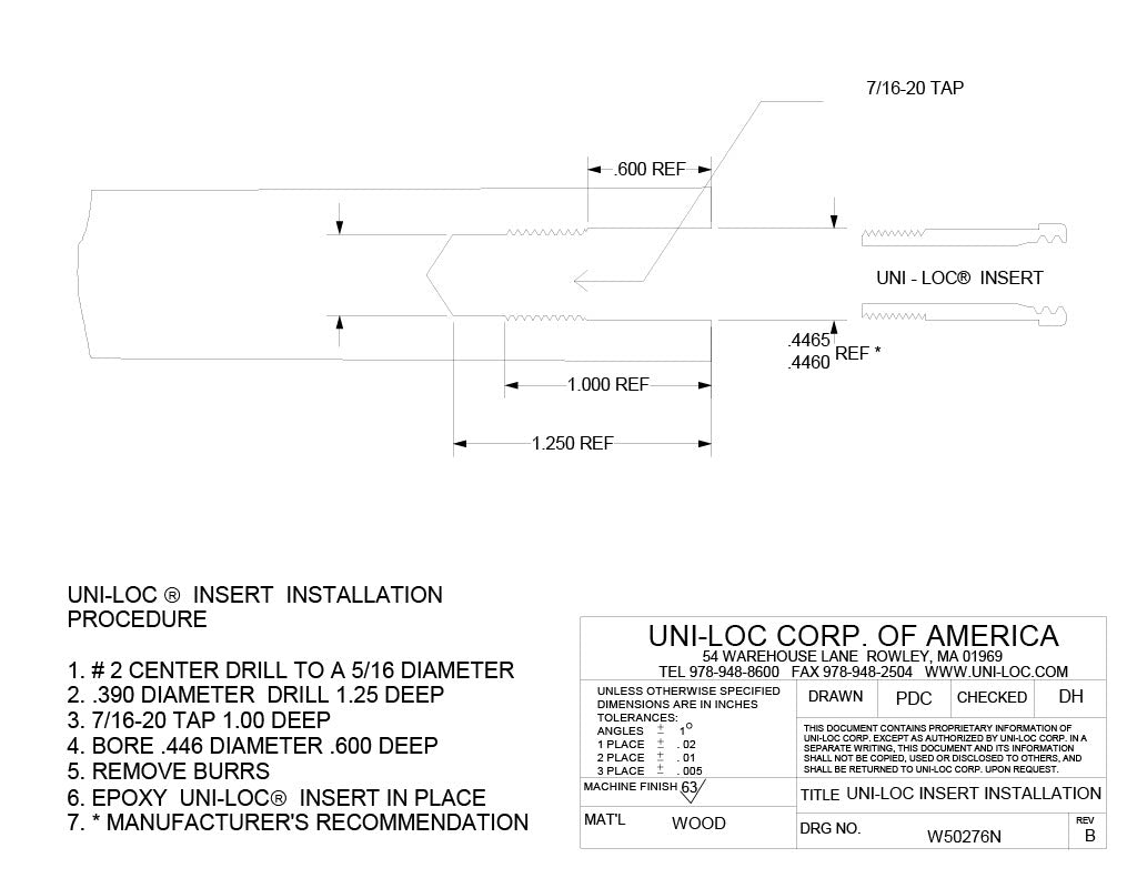 Quick Release Uni-Loc Insert Specifications