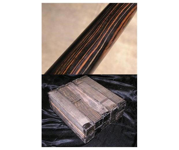 Striped Ebony, also known as Diospyrus Crassiflora, is a rare and exotic hardwood. It features a unique striped pattern. This unique wood is a favorite among woodworkers and craftsmen for its stunning appearance. Apart from cue-making, it is often used in high-end furniture and musical instruments. Each piece of Striped Ebony is unique, showcasing a one-of-a-kind pattern that adds character and beauty to any project.